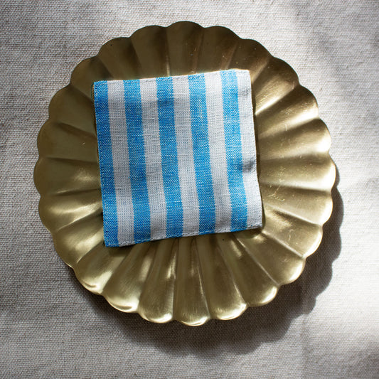 Fog Linen Work, Linen Coaster - Turquoise Stripe