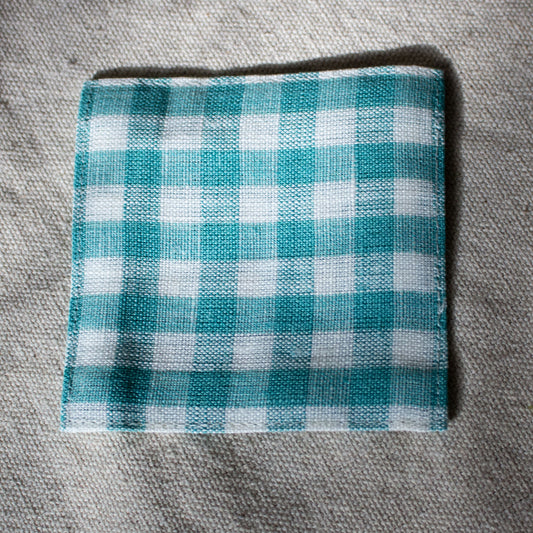 Fog Linen Work, Linen Coaster - Seafoam Check